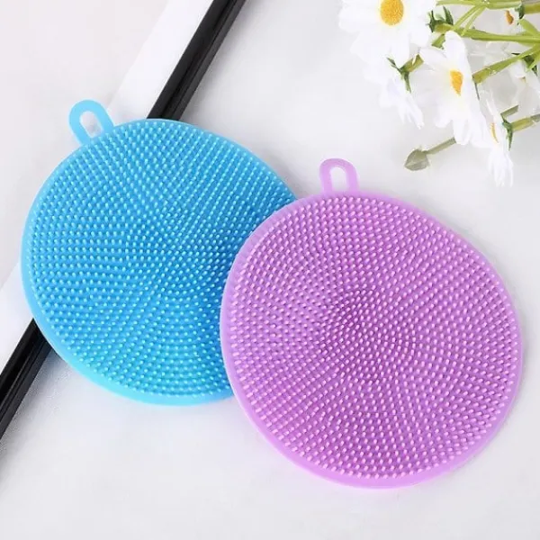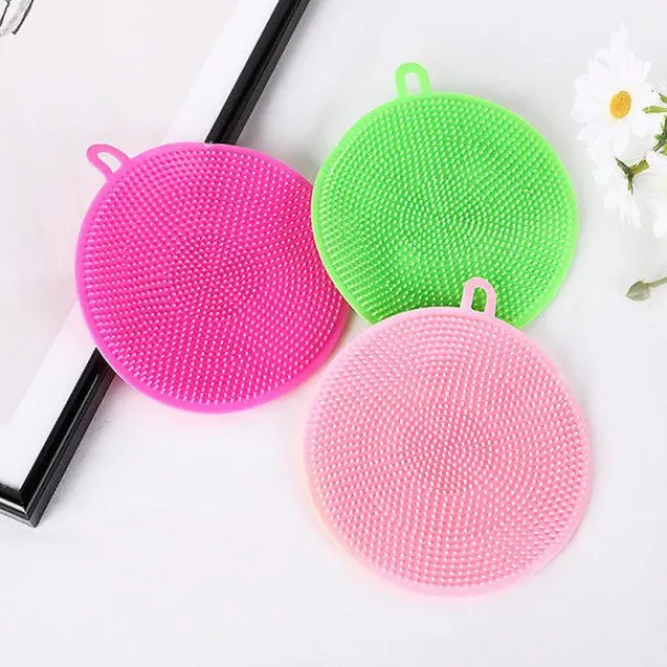Material: Den är tillverkad av högkvalitativt silikagel av livsmedelskvalitet, som inte är lätt att deformera och kan återanvändas under lång tid. Borsten är mjuka och repar inte ytan på disken och kastrullerna som ska rengöras.