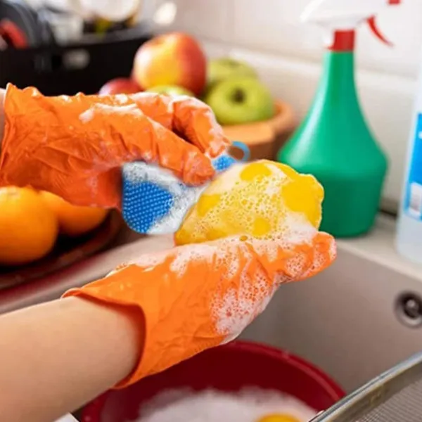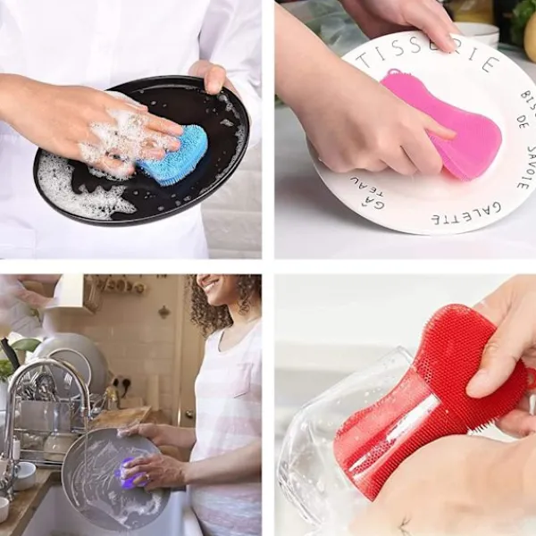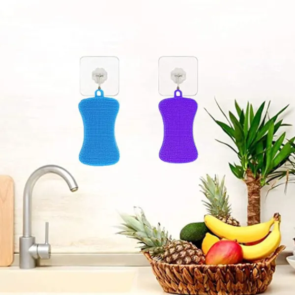 【Premiummaterial】 Den supermjuka kökssvampen är tillverkad av 100 % silikon av livsmedelskvalitet, BPA-fri, giftfri, hållbar och deformeras inte lätt. Säker, lätt att rengöra (tål maskindisk eller sköljning med rinnande vatten). 【Antibakteriell rengöringssvamp】 Silikonsvamp med hängögla, passar perfekt i handen, lätt att hänga och torka, inga bakterier, inga rester. Bakterier kan inte växa här lika bra som i en konventionell svamp och ger ett bra skydd för hela familjen. Mer miljövänlig och praktisk än konventionella svampar. 【Multifunktionell】 Som rengöringssvamp kan du använda denna disksvamp för att diska, rengöra skålar, kastruller, stekpannor, frukt, grönsaker, bil, badrum eller rengöra sminkborstar, ta bort djurhår etc. 【Precisionsdesign】 Med ett krokhål, snabbtorkande. Benformen gör den lättare att kontrollera och mer flexibel att använda. 【Lätt att rengöra och torka】 Denna produkt kan tvättas och desinficeras med kokande vatten efter användning och tål maskindisk. Bakterier kan inte växa här lika bra som i en konventionell svamp och ger ett bra skydd för hela familjen.