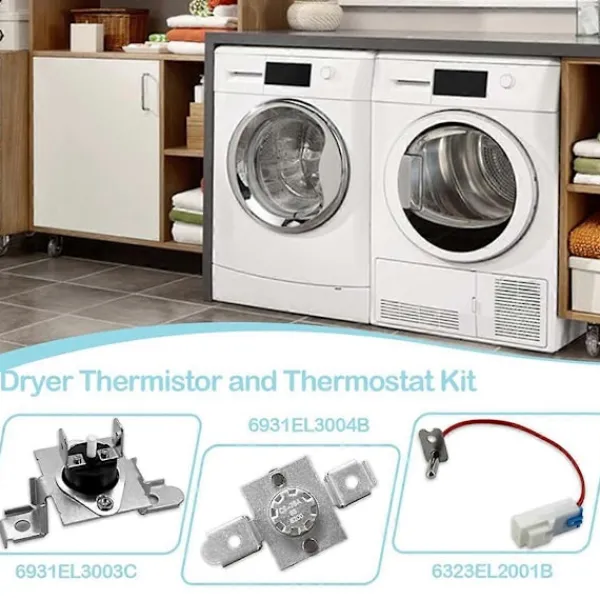 Kitet innehåller både termistor/er och termostat/er, vilket säkerställer en omfattande ersättning för förbättrad funktionalitet. Termistorn kan vara defekt eller skadad om torktumlaren överhettas, inte genererar tillräckligt med värme eller tar för lång tid att torka. Detta kan resultera i längre eller kortare torktider.
