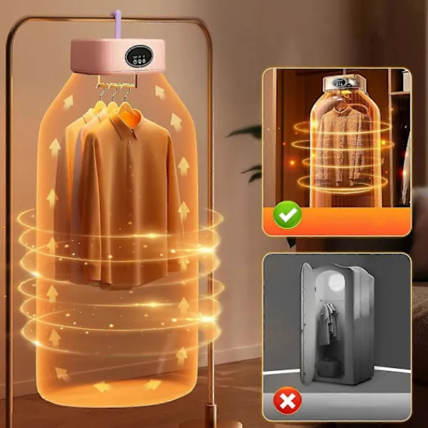 Det finns två justerbara hastigheter (mild vind/stark vind), plus en timerfunktion, du kan justera torktiden från 1, 2 till 4 timmar efter dina behov.
