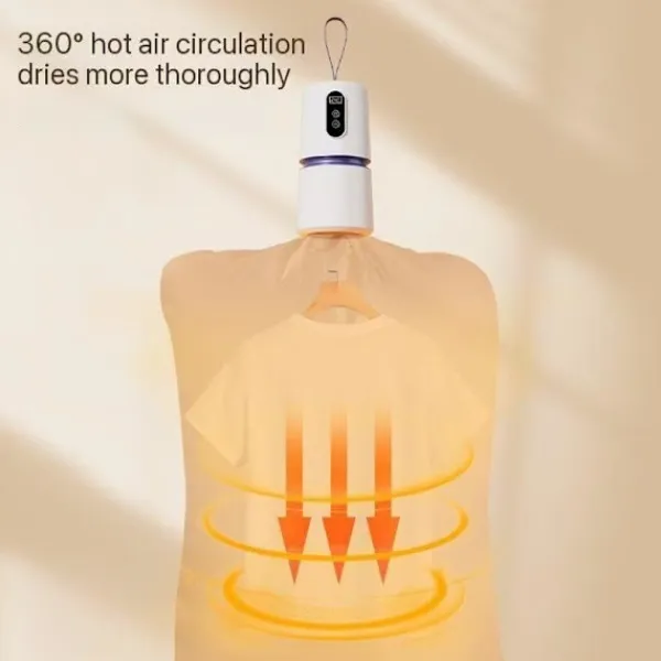 Praktiska Tillbehör för Mångsidig Användning Levereras med en torkpåse och krok för enkel upphängning i hotellrum, badrum eller husbilar. Låter dig torka kläder var som helst samtidigt som du håller dem säkra och jämnt exponerade för varm luft.