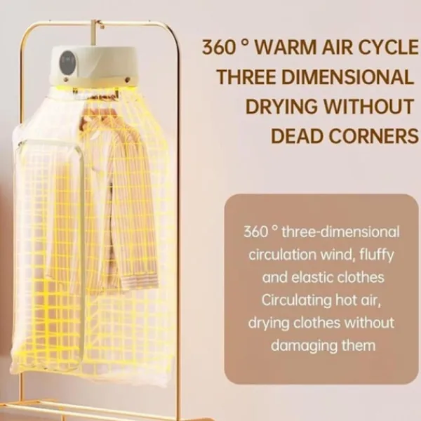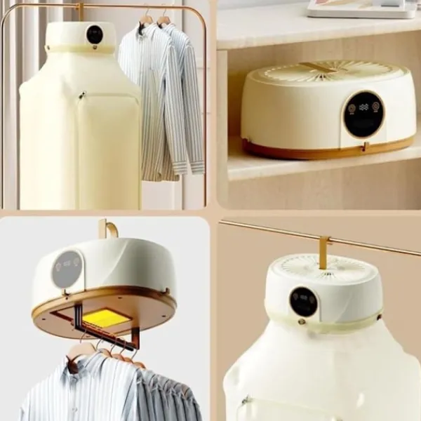 Bärbar Klädtork med Fjärrkontroll – Automatisk Strykning & Skrynkelfri Tork – Tyst 50dB Design – Resvänlig 1kg