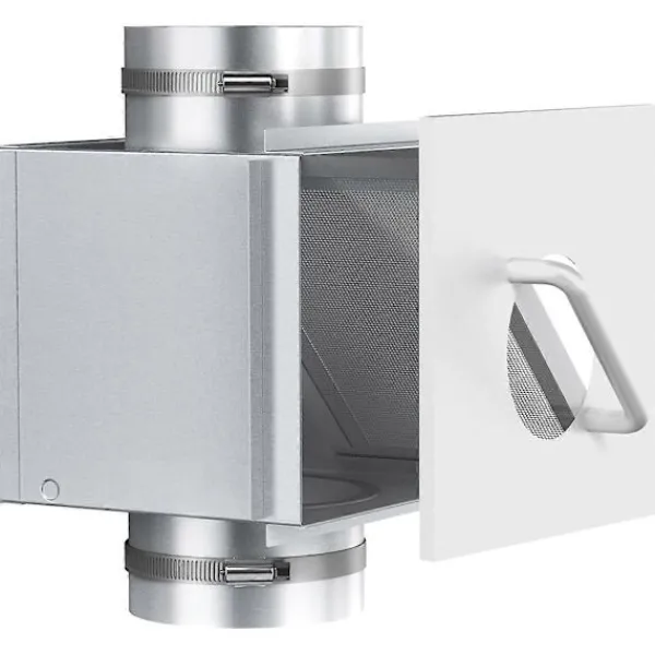 Två Installationsmetoder: Luddfilterboxen kan antingen fällas in i väggen eller installeras direkt på väggytan med skruvar, välj det sätt du föredrar att installera den på.