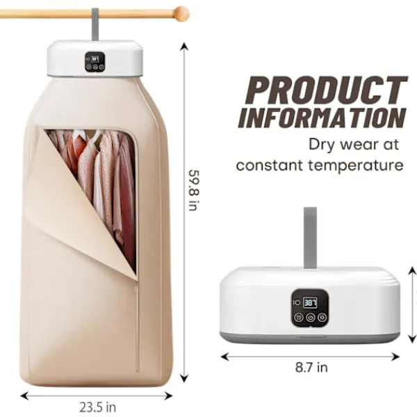 Portabel Design: Denna kompakta torktumlare är perfekt för små utrymmen som lägenheter, husbilar och under resor. Dess vikbara design gör den enkel att förvara när den inte används.