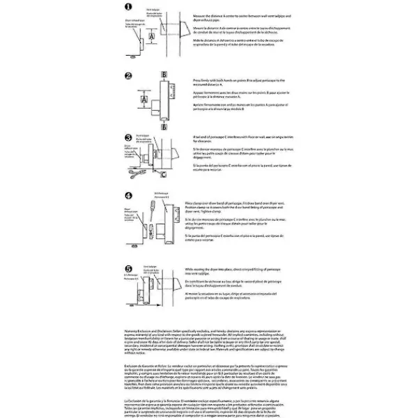 Periskopet inkluderar en 4-tums hane, krympt roterande snäpplås krage för säker anslutning till vägguttaget, och en 4-tums hona, dragbands roterande krage som passar tätt över torkskåpsuttaget, vilket säkerställer en tät och effektiv ventilanslutning.