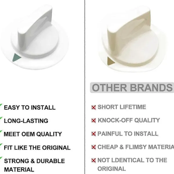 Kvalitetssäkring: Torktumlarknappen är tillverkad av högkvalitativ plast med metallringförstärkning i botten, 2,8 tum i diameter, vit färg. Inga verktyg krävs för reparation, dra bara den befintliga knappen rakt ut från skaftet och installera ersättningen.