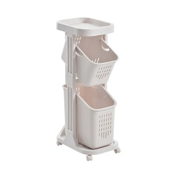 Förenkla tvättandet med den här praktiska vagnen på hjul. Den har 2 tvättkorgar och en hylla för tvättmedel och andra nödvändigheter. Korgarna har ventilerande hål som förhindrar dålig lukt. Vagnen är lätt att flytta runt och passar perfekt i tvättstugan. Nu kan du hålla ordning på din tvätt och ha allt du behöver på ett ställe.