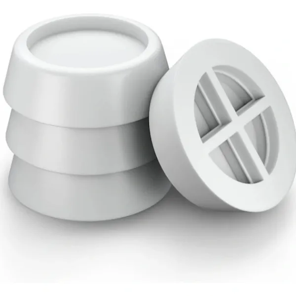 Eliminering av vibrationer och buller — Dessa vibrationsdämpande fötter förhindrar att tvättmaskinen hoppar och går, förhindrar att dina maskiner rör sig på golvet och minskar 94,7 % av vibrationer och buller. Dämparna passar alla stilar, märken och modeller av tvättmaskiner med front- och toppmatning.