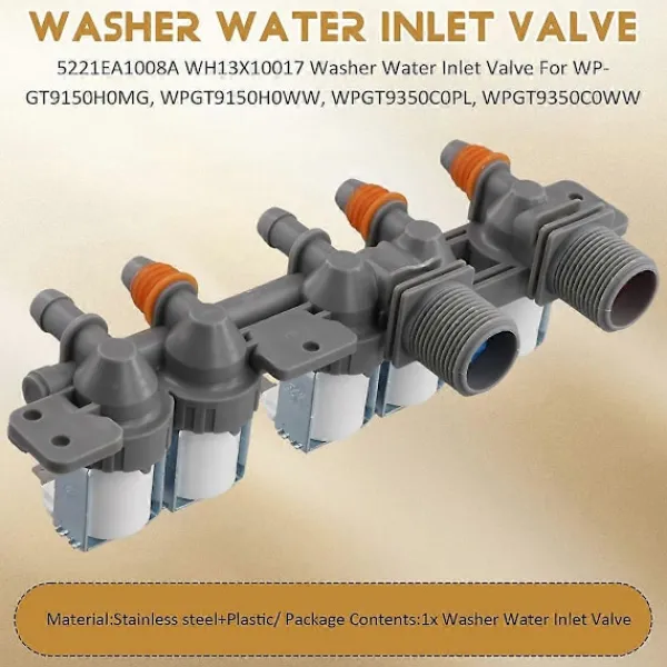 Ny WH13X10017 vatteninloppsventil för tvättmaskin, passar tvättmaskinsmodeller: WPGT9150H0MG, WPGT9150H0WW, WPGT9350C0PL, WPGT9350C0WW, WPGT9360C0PL, WPGT9360C0WW, WPGT9360E0PL, WPGT9360E0WW.