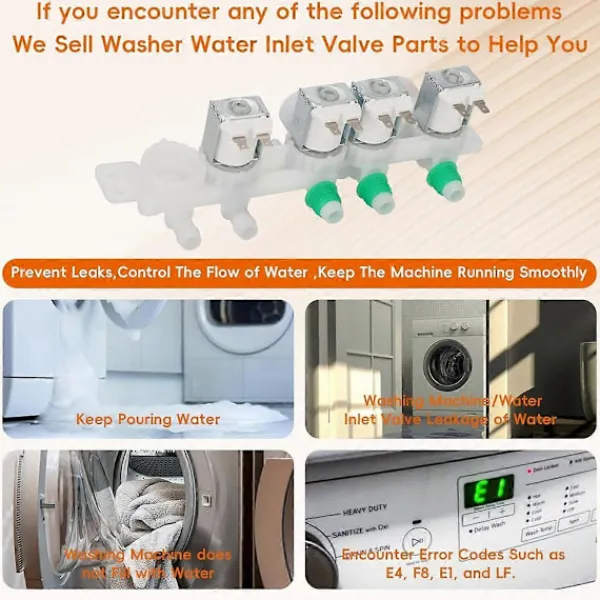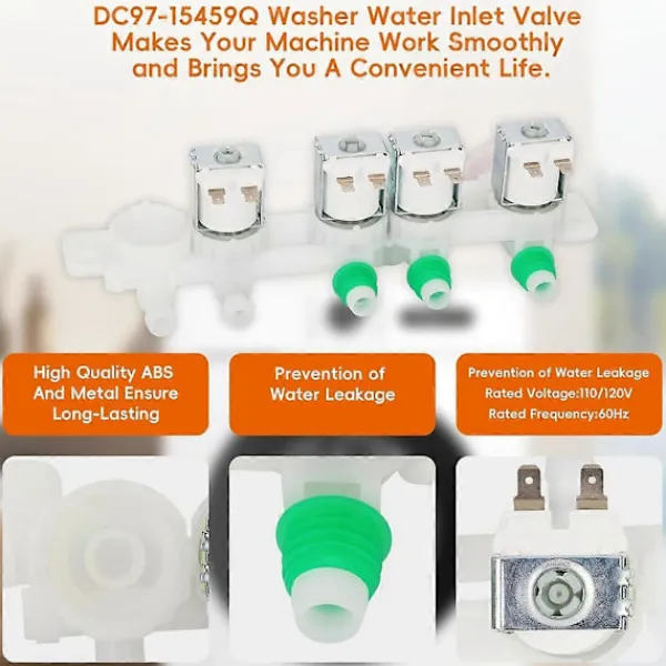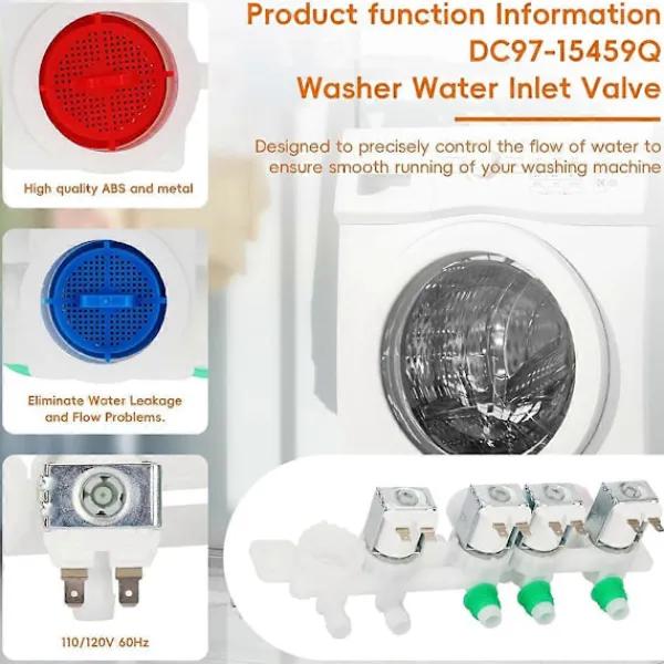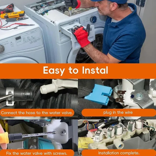 [Kompatibilitet] Denna DC97-15459Q vatteninloppsventil är designad för ett brett utbud av Samsung tvättmaskiner, inklusive modellerna WA51A5505AC/US-00, WA52A5500AV/US-00 och fler, vilket säkerställer en perfekt passform och optimal funktion för din apparat. [Högkvalitativ konstruktion] Tillverkad av slitstark ABS och metall, denna vatteninloppsventil motstår rost och korrosion. Med fyra solenoidspoleventiler styr den vattenflödet exakt, vilket förbättrar tvättmaskinens effektivitet och säkerhet med en 110/120V, 60Hz design. [Enkel installation] Innan du börjar, se till att tvättmaskinens ström- och vattenförsörjning är avstängd. Du behöver en skruvmejsel och en tång. Ta bort bakstycket, lossa den gamla ventilen och installera den nya enligt våra enkla instruktioner för en snabb installation. [Enkel installation] Installation av vatteninloppsventilen för toppmatade tvättmaskiner kräver endast grundläggande verktyg som en skruvmejsel och en handduk om det behövs, vilket sparar tid och pengar på teknikeravgifter. Ta bort skruvarna på det övre locket och slangen som är ansluten till den gamla vatteninloppsventilen och fäst sedan den nya ventilen på plats.