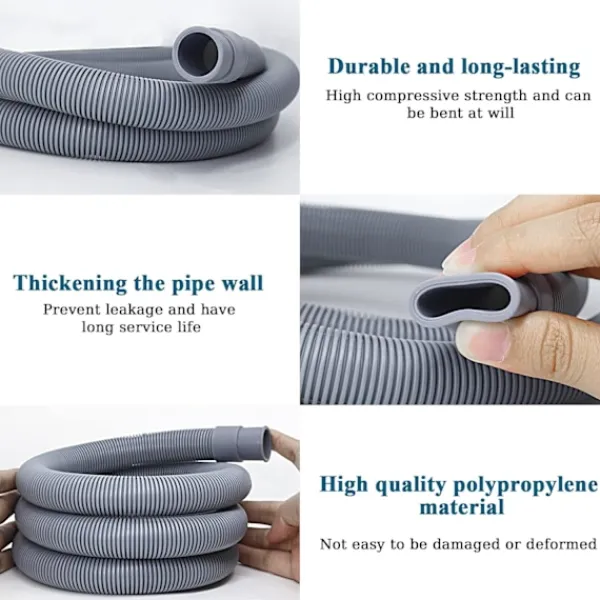 Hög kvalitet och hållbar: Tvättmaskinens avloppsrör är tillverkat av högkvalitativ polypropen, som inte är lätt att deformera. Det kan snabbt återgå till sin ursprungliga form efter att ha pressats för att säkerställa smidig dränering. Tjock väggdesign förhindrar att slangen vrids, kläms, täpps till och läcker. Den kan användas upprepade gånger och har en lång livslängd.