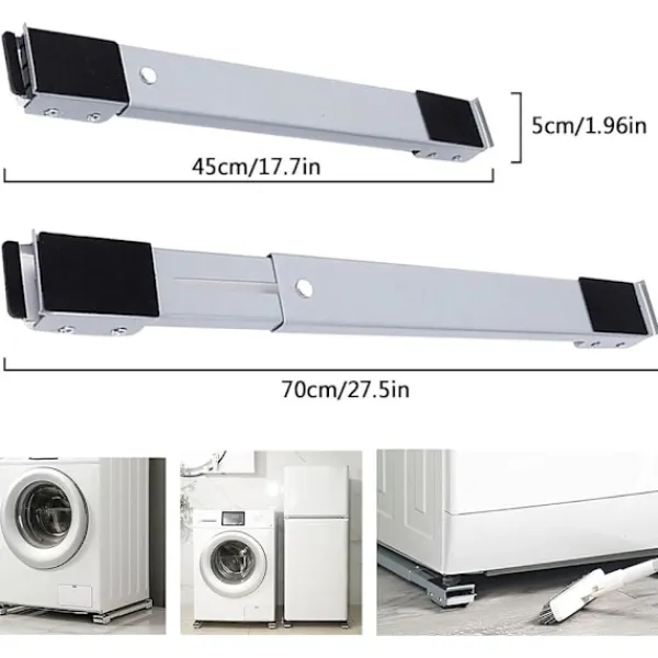 1. Justerbar design: Möbelflyttaren för tvättmaskin har en dubbelradig design och justerbar längd, från 44,5 till 70 cm, vilket ger mångsidighet för olika möbelstorlekar inklusive kylskåp, tvättmaskiner, torktumlare och minikylskåp.