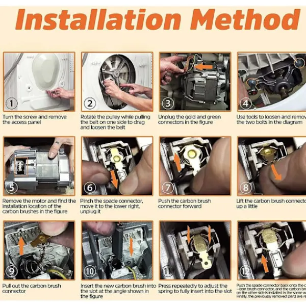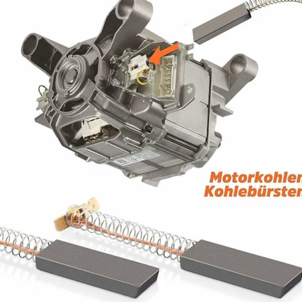 Enkel att byta ut motorkolborstar: Motorn är lätt att hitta på baksidan av tvättmaskinen. Ta bort motorn och byt ut borsten på motorns vänstra och högra sida.