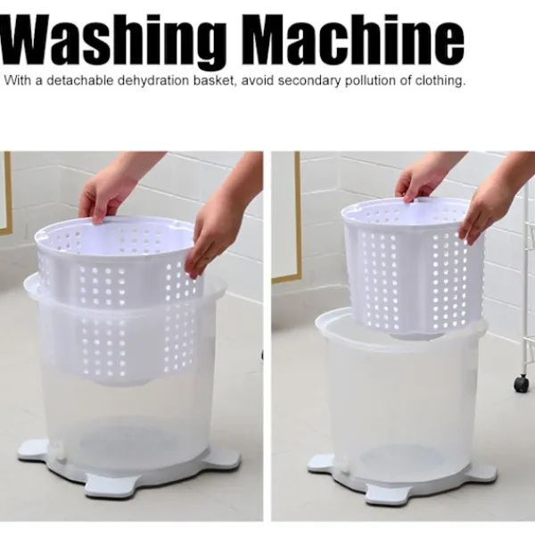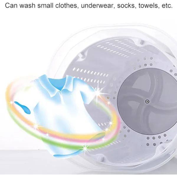 Snabb och effektiv: Tack vare sin kraftfulla centrifugeringshastighet kan denna minitvättmaskin rengöra dina kläder noggrant på bara några minuter, vilket sparar tid och energi.