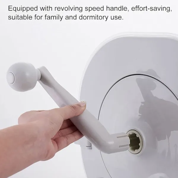 Lätt att använda: Tvättmaskinen fylls enkelt med vatten och tvättmedel, lägg i kläder och vrid på handtaget för att starta tvätten. Inga komplicerade knappar eller inställningar att lista ut.
