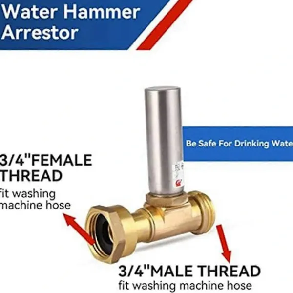 Vattenhammareliminator i rostfritt stål för tvättmaskinens vattenförsörjningsventil eller direktanslutning till tvättmaskinens rör: 3/4 tum invändig roterande slanganslutning x 3/4 tum utvändig slanganslutning; Maximalt driftstryck: 250 PSI. Kan installeras horisontellt eller vertikalt. Dämpar instabil vattenhammare och buller och skyddar tvättmaskinens styrsystem. Ventilhus i låg-bly mässing. Färg: Guld + Silver. Material: Rostfritt stål. Paketets innehåll: 1x Vattenhammareliminator för tvättmaskin. Endast ovanstående paketinnehåll, andra produkter ingår inte. Obs: Ljusreflektion och olika skärmar kan göra att färgen på objektet på bilden skiljer sig lite från den verkliga färgen. Det tillåtna mätfelet är +/- 1-3 cm.
