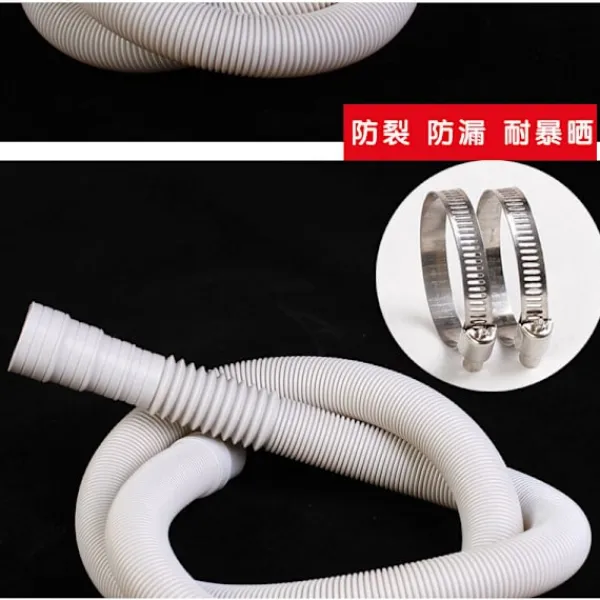 2M avloppsslangförlängning; änden på tvättmaskinens avloppsslang anpassar sig perfekt till tvättmaskinens utlopp. Röret har en speciell flexibilitet och kan enkelt vikas utan att orsaka läckage.