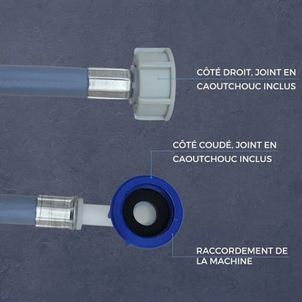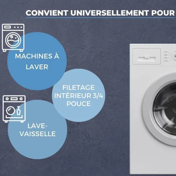 UNIVERSELL ANVÄNDNING – Vår mångsidiga kallvattenslang är lämplig för alla tvättmaskiner och diskmaskiner, oavsett tillverkare, och säkerställer optimal vattentillförsel. Vattenslangen imponerar med sin högkvalitativa bearbetning och pålitliga tätning tack vare sina två gummitätningar – se själv! PRAKTISKA ANSLUTNINGAR – Anslutningsslangen har en 3/4″ (2,64 cm) invändig gänga. Den är vinklad på maskinens sida, vilket gör den enkel att montera på apparaten. VALBAR LÄNGD – Vår tvättmaskinsslang finns i fem olika längder, från 1,5 m till 3,5 m. Välj rätt längd efter dina individuella behov!