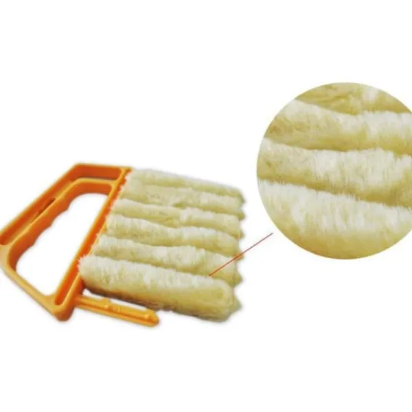 Rengör 6 blad: Praktisk rengöringsborste för rengöring av persienner, Samtidig rengöring av topp och botten av 6 blad, Bekväm applicering tack vare det förformade handtaget