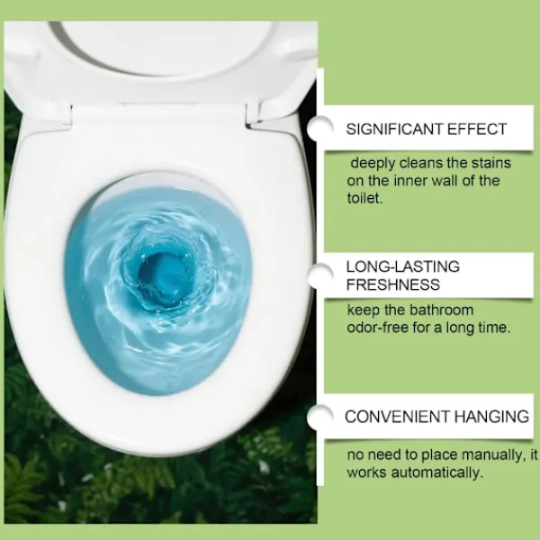 Funktioner:[Långvarig Rengöring] Speciellt utvecklad blandning frigör stadigt aktiva ämnen, vilket effektivt hindrar smuts från att byggas upp. Idealisk för dagligt hushållsbruk, och bibehåller en fräsch toalett under längre perioder. [Enkel Design] Inga verktyg behövs – den snabba fastsättningen låter dig byta ut den utan ansträngning. Perfekt för upptagna yrkesverksamma och erbjuder en lösning för badrumsunderhåll. [Behaglig Naturlig Doft] Infunderad med extrakt för att frigöra en mild, uppfriskande doft. Perfekt för dem som värdesätter ett förfinat boende och en behaglig användarupplevelse. [Medveten Sammansättning] Tillverkad av ämnen för att minimera påverkan. Designad för hållbarhetsmedvetna användare och stöder grönare vanor. [Kraftfull Fläckbekämpande Effekt] Avancerade rengöringsmedel bryter ner tuffa avlagringar snabbt och håller toaletten fläckfri och som ny. Rekommenderas för hem med barn eller husdjur, vilket säkerställer renlighet.