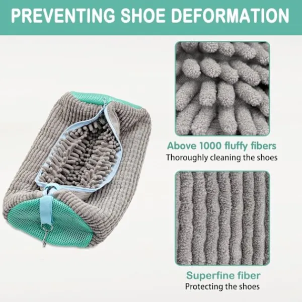 360° Djuprengöring: Tusentals 2,5 cm chenille-mikrofibertrådar omger dina skor för en komplett, skonsam rengöring – inget mer skrubbande för hand. Släng bara in den i tvättmaskinen och låt påsen göra jobbet samtidigt som den skyddar skornas form och tyg. Skyddar Skor & Tvättmaskin: Designad för att skydda mot slitage, denna tvättskopåse dämpar dina skor samtidigt som den förhindrar repor och skador inuti din tvättmaskin. Ett smartare, säkrare sätt att tvätta skor. Hållbar Dold Dragkedja: Inbyggd osynlig dragkedja med en skyddande flik förhindrar repor på din tvättmaskin. Dessutom gör den extra hängöglan lufttorkning och förvaring snabbt och enkelt. Enkelt & Tidsbesparande: Skippa besväret med handtvätt. Dra bara igen dina skor, släng påsen i din maskin och njut av rena skor utan att lyfta ett finger – perfekt för en hektisk livsstil. Passar De Flesta Skostorlekar & Stilar: Oavsett om det är sneakers, löparskor eller barnskor, är denna skopåse med stor kapacitet tillräckligt mångsidig för att passa de flesta typer och storlekar. Återanvändbar och långvarig – ett måste för varje hem.