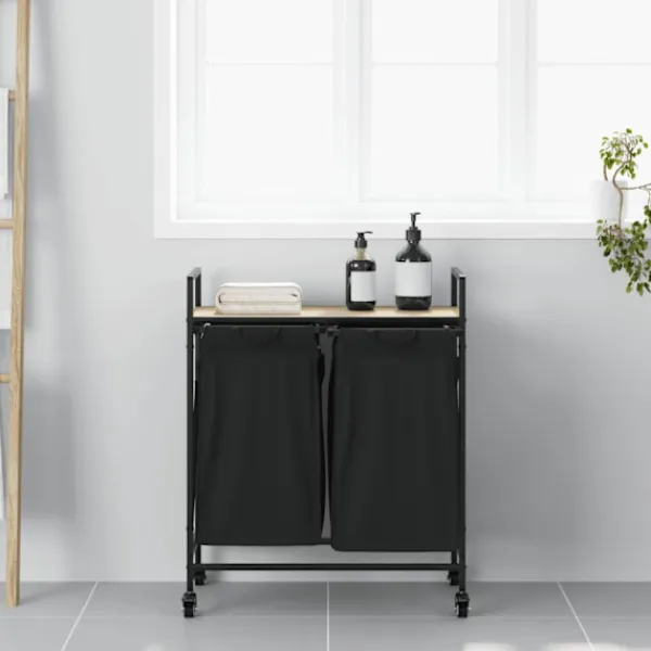 - Övre förvaringsyta: Tvättkorgen har en topphylla som erbjuder en praktisk lösning för att hålla dina nödvändigheter inom räckhåll. Perfekt för förvaring av toalettartiklar, tvättmedel, sköljmedel eller till och med dekorativa föremål.