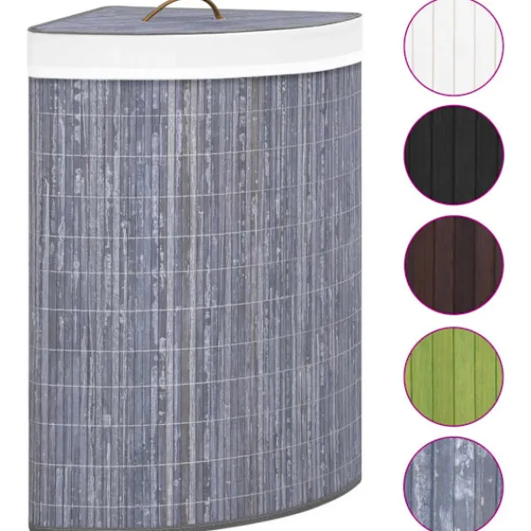 Denna hörntvättkorg i bambu är en perfekt lösning för alla hushåll. Den håller dina smutskläder utom synhåll, och på ett och samma ställe. Innerfodret är tillverkat av vävt tyg som inte absorberar fukt eller lukt. Det är också avtagbart så att du enkelt kan transportera din tvätt till maskinen. Dess stora volym ger dig tillräckligt med utrymme för att organisera och lagra kläder. Den är utrustad med ett handtag för att enkelt flyttas runt. Tvättkorgen kan demonteras och vikas ihop för enkel förvaring. Det är en perfekt lösning för organisering i vardagsrummet, badrummet och sovrummet. Dessutom kan denna multifunktionella korg också användas för att förvara barnleksaker. Vänligen observera att den faktiska färgen kan skilja sig något från färgen i bilderna.