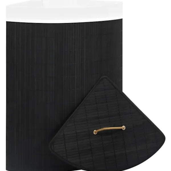 Denna hörntvättkorg i bambu är en perfekt lösning för alla hushåll. Den håller dina smutskläder utom synhåll, och på ett och samma ställe. Innerfodret är tillverkat av vävt tyg som inte absorberar fukt eller lukt. Det är också avtagbart så att du enkelt kan transportera din tvätt till maskinen. Dess stora volym ger dig tillräckligt med utrymme för att organisera och lagra kläder. Den är utrustad med ett handtag för att enkelt flyttas runt. Tvättkorgen kan demonteras och vikas ihop för enkel förvaring. Det är en perfekt lösning för organisering i vardagsrummet, badrummet och sovrummet. Dessutom kan denna multifunktionella korg också användas för att förvara barnleksaker. Vänligen observera att den faktiska färgen kan skilja sig något från färgen i bilderna.