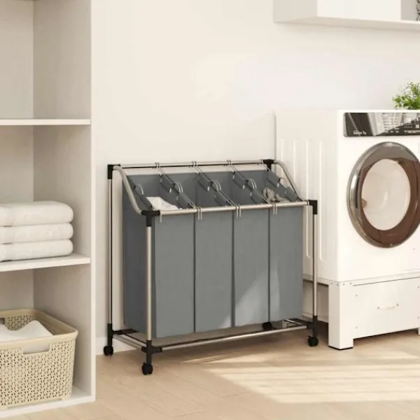 - Gott om förvaringsutrymme: Denna tvättkorg har 4 tvättpåsar, så att du kan förvara dina kläder efter färg och material, vilket säkerställer att dina kläder är välorganiserade och sparar tid.