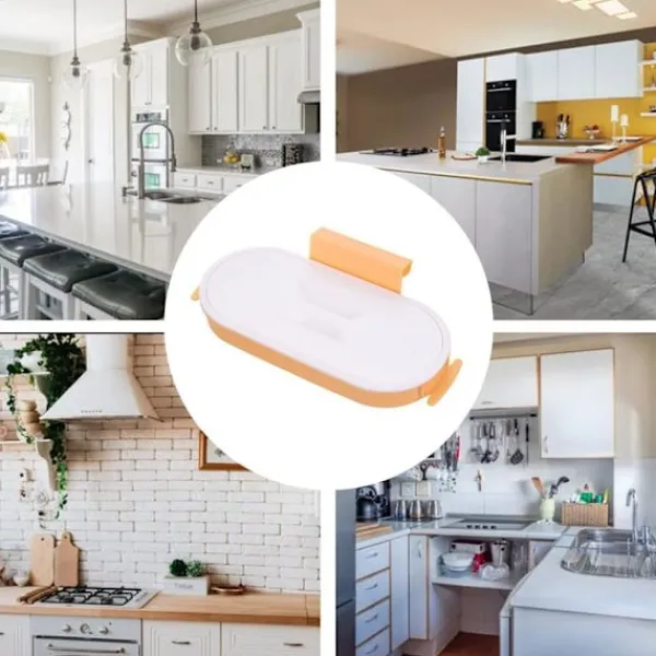 【Fördel】Sopsäckshållaren kan hängas på skåpsdörren eller låddörren för att spara utrymme. Locket på Köksopsäckshängaren kan förhindra att dålig lukt från sopor sprids för att hålla köket rent och snyggt.