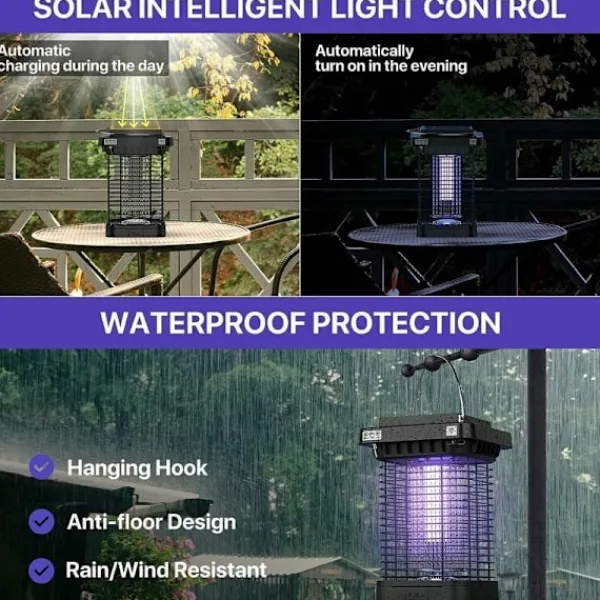 【Professionell myggdödande lampa】Myggdödande lampa är utrustad med högintensiva ultravioletta strålar, avger en våglängd på 365 nm, som vetenskapligt bevisats vara mycket attraktiv för insekter och myggor. Precis som flugor, myggor och andra flygande insekter kan inte motstå att vara nära ljuskällan och kommer att elimineras omedelbart.;【Brett användningsområde】360 graders allrounddesign, kan täcka 10-100 kvadratmeter. Kan användas inomhus och utomhus. Perfekt för hem, kontor, restaurang, skola, trädgård, balkong, gård etc. För att förbättra effekten rekommenderar vi att du placerar myggdödande lampan på en höjd av 20-100 cm så att UV-ljuset kan täcka hela rumsutrymmet.;【Säker och giftfri】Använder fysisk metod för att utrota myggor, inget ljud, inga kemikalier, kan 100 % fysiskt eliminera myggor och andra insekter. Skalet är tillverkat av högkvalitativ ABS för att förhindra oavsiktlig kontakt. Den är säker för gravida kvinnor, barn och djur.;【Enkel att använda och rengöra】Elektrisk myggfälla Den hängande ringdesignen gör att du kan hänga den eller placera den på bordet. Du kan hänga mygglampan på en höjd av cirka 1,8 m i ett rum. Döda myggor samlas i botten av den avtagbara brickan, som enkelt kan tas bort för snabb rengöring.;【Enkel att använda och rengöra】Elektrisk myggfälla Den hängande ringdesignen gör att du kan hänga den eller placera den på bordet. Du kan hänga mygglampan på en höjd av cirka 1,8 m i ett rum. Döda myggor samlas i botten av den avtagbara brickan, som enkelt kan tas bort för snabb rengöring.