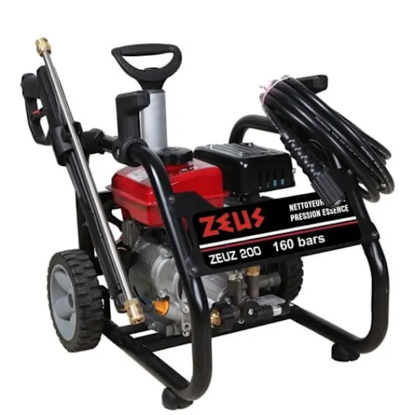Högtryckstvätt med förbränningsmotor levererad med rotabuse som ger ett tryck på 160 bar – maximalt tryck med rotabuse: 160 bar – maximalt tryck utan rotabuse: 124 bar – Kontinuerligt tryck med rotabuse: 120 bar – Kontinuerligt tryck utan rotabuse: 90 bar – Maximalt flöde hastighet 450 l / h-7,5 L / min – Axial aluminiumpump – Kolvar av rostfritt stål – Typ av 4-taktsmotor Luftkyld – Bränsle: Bensin SP95 / 98 – Motoreffekt